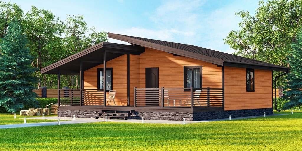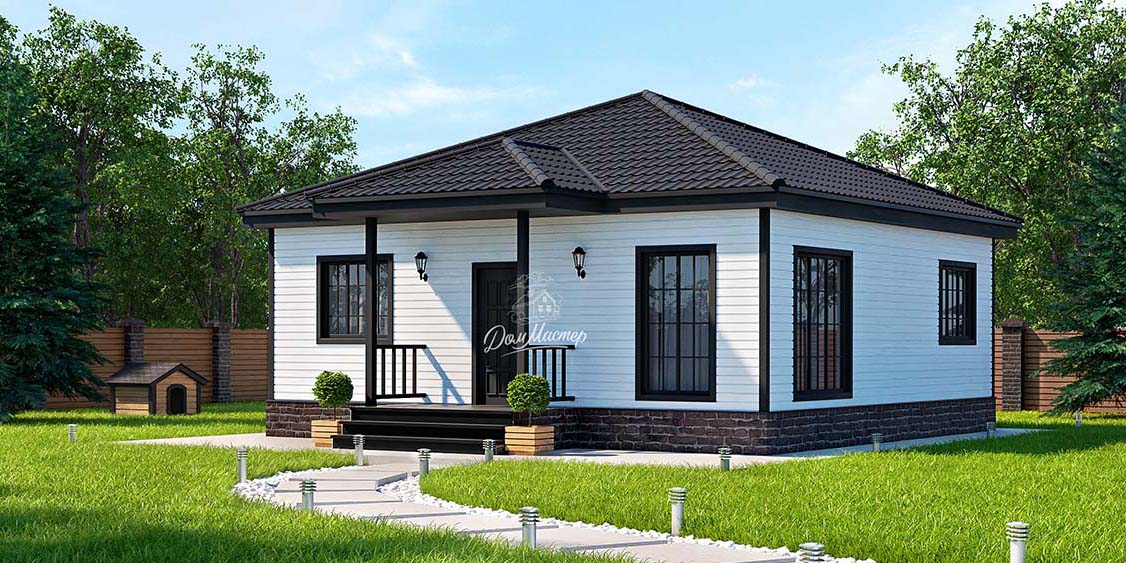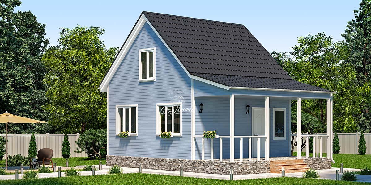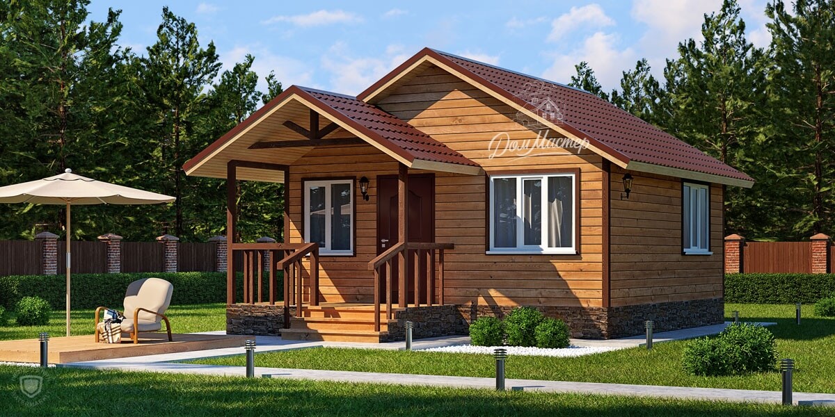 Фундамент, утепление, полы, межкомнатные перегородки по проекту, металлопластиковые окна 1000х1200 - 2 шт., межкомнатные двери (МДФ) - 1 шт., входная дверь металлическая, крыша двускатная 'Ондулин', внутренняя отделка ОСП, внешняя отделка 'Вагонка', пароизоляция и ветровая мембрана, гидроизоляция дна и крыши